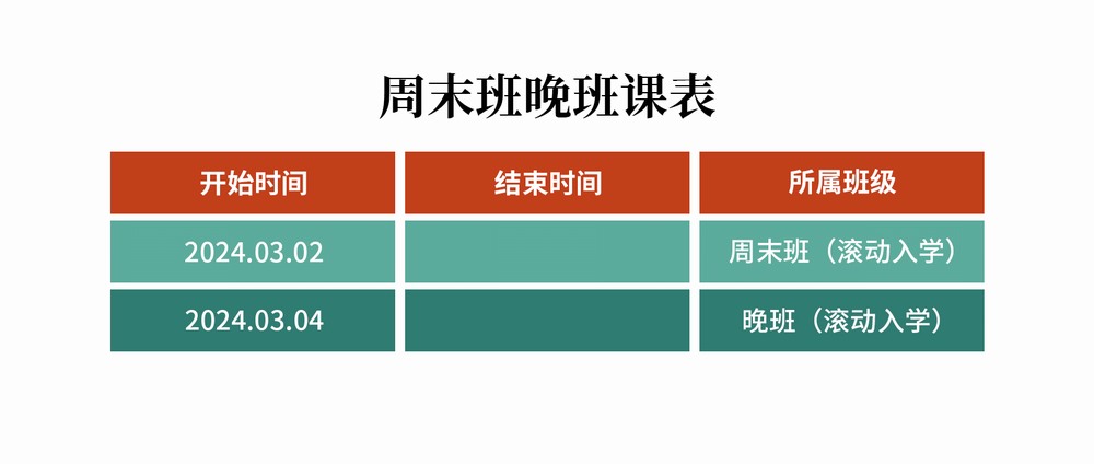 2024周末班晚班早班全年课表
